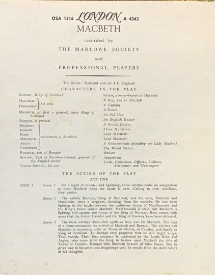 MACBETH-SHAKESPEARE-VINYL LP-RARE LONDON RECORDS PRESSING