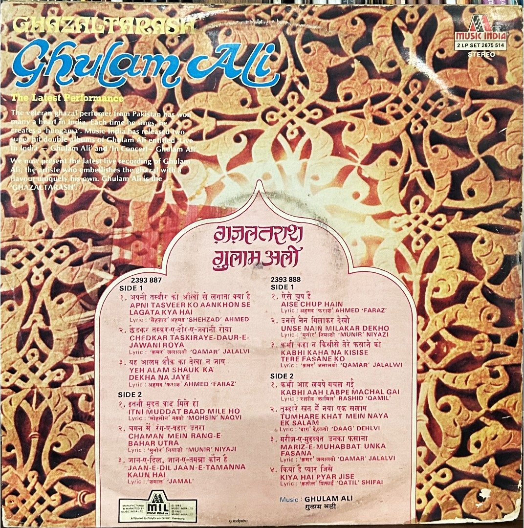 Be the first to review “MERAJ E GHAZAL-ASHA BHOSLE-GHULAM ALI-VINYL LP” Cancel reply