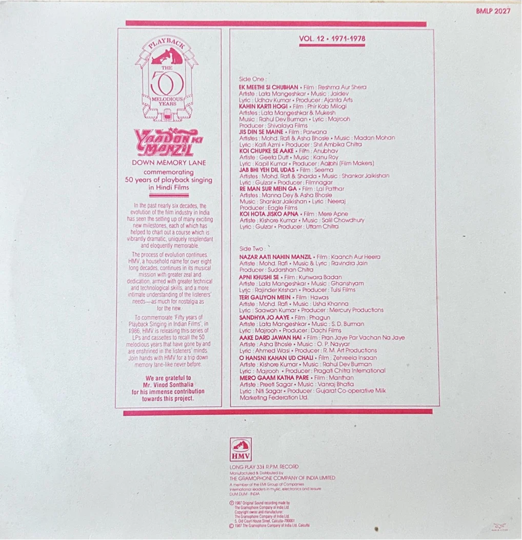 Yaadon Ki Manzil – Down Memory Lane Vol.12 (1971-1978)-RARE COMPILATION